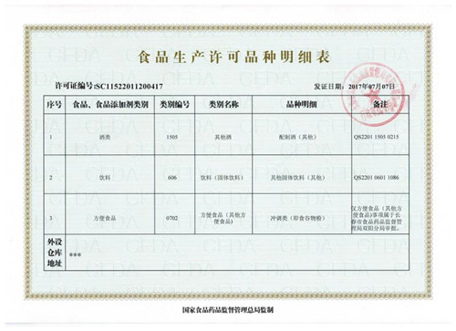食品生產許可品種明細表